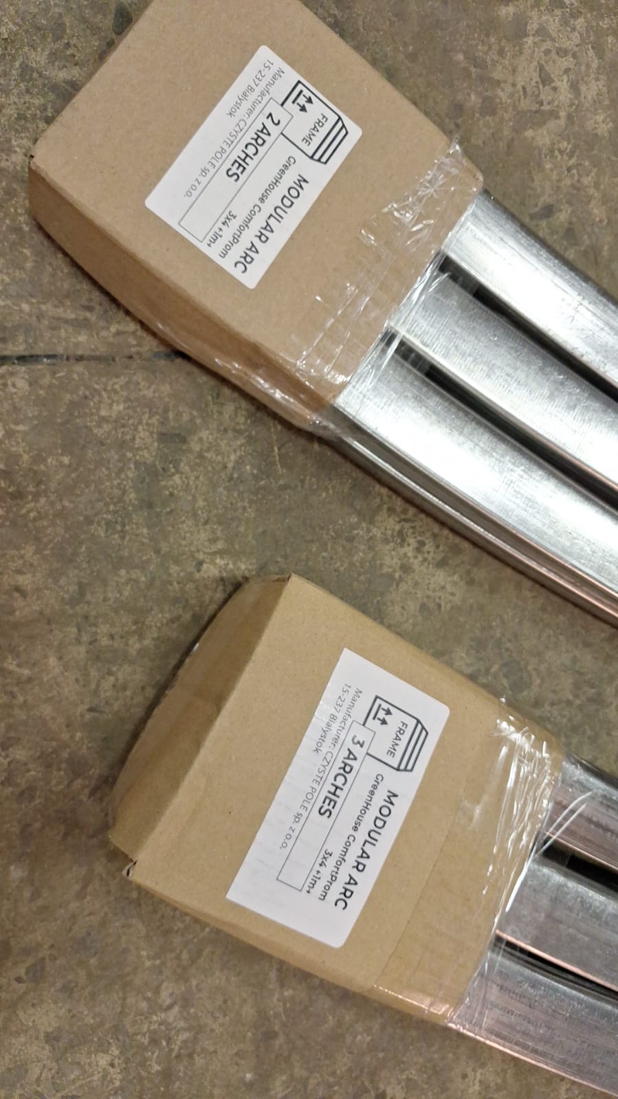 - Attālums starp arkām: 0.67 m vai 1 m