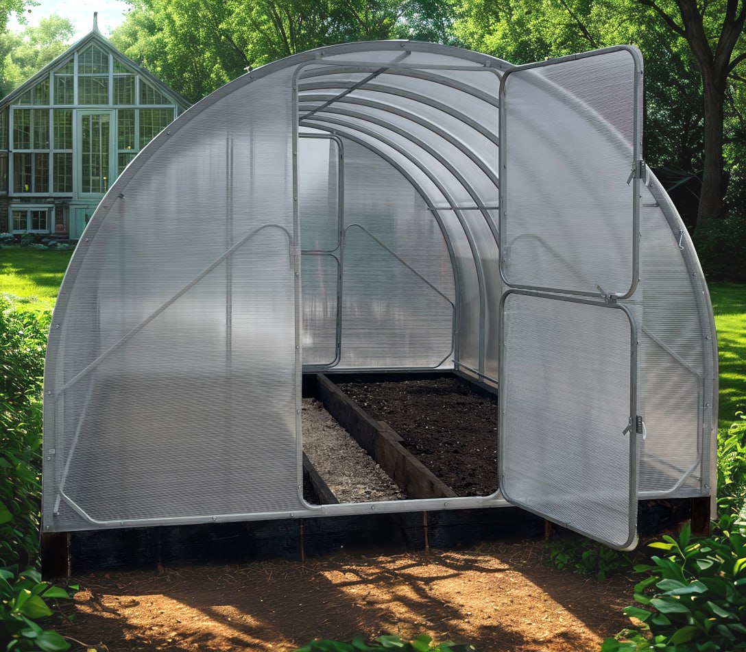 Klasiskas formas cinkota tērauda siltumnīca ar izturīgiem stiprinājumiem un efektīvu ventilācijas sistēmu. Komplektā iekļauts pilns montāžas komplekts.